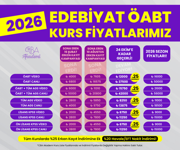 2026 EDEBİYAT ÖABT VİDEO DERS (24 Ekim'e Kadar %25 İndirimli)