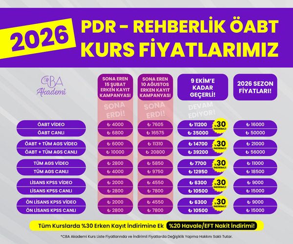 2026 PDR REHBERLİK ÖABT VİDEO DERS (9 Ekim'e Kadar %30 İndirimli)