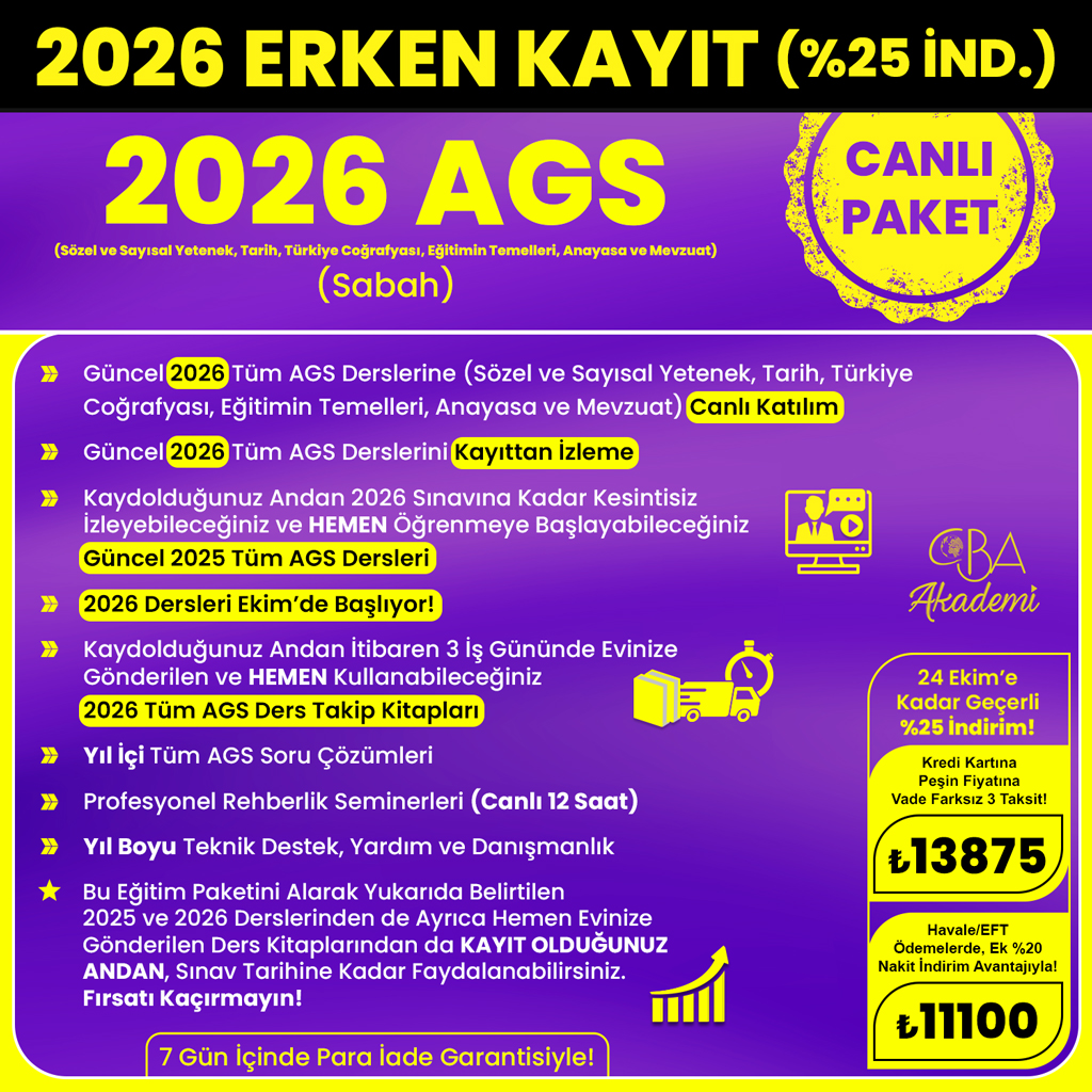2026 AGS (Sabah) CANLI DERS (25 Temmuz'a Kadar %25 İndirimli)