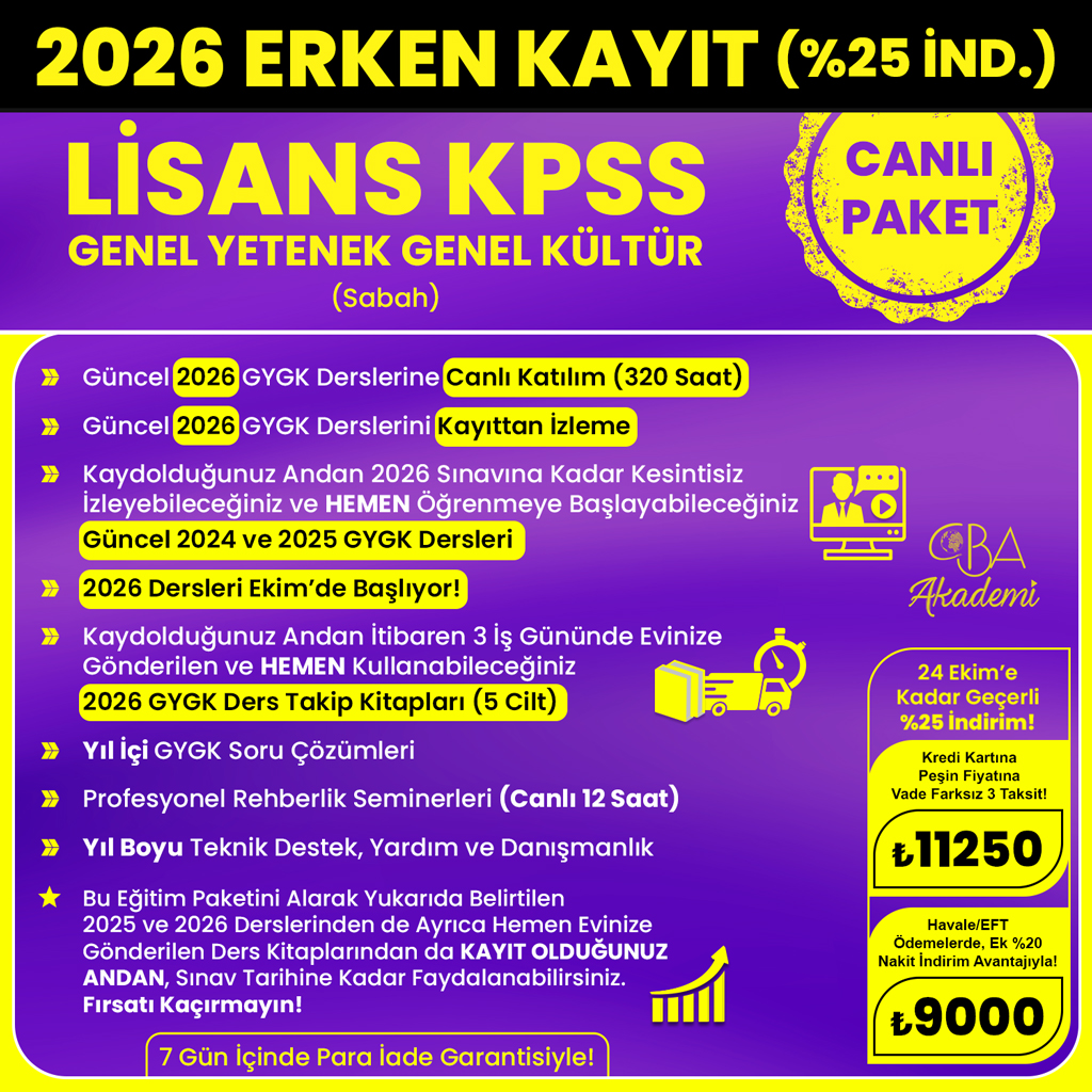 2026 LİSANS KPSS (Sabah) CANLI DERS (25 Temmuz'a Kadar %25 İndirimli)