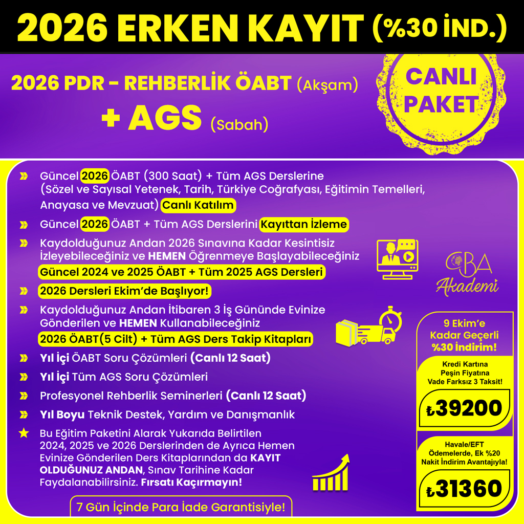 2026 PDR - REHBERLİK ÖABT (Akşam) + AGS (Sabah) CANLI DERS (25 Temmuz'a Kadar %25 İndirimli)