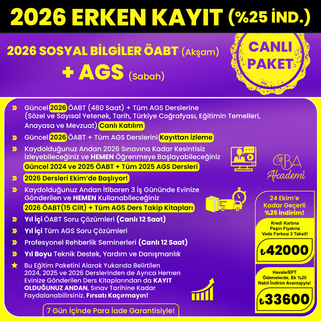 2026 SOSYAL BİLGİLER ÖABT (Akşam) + AGS (Sabah) CANLI DERS (25 Temmuz'a Kadar %25 İndirimli)